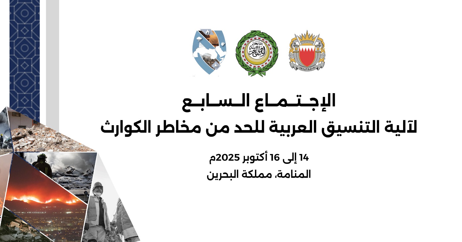 تعقد الأمانة العامة لجامعة الدول العربية (إدارة الإسكان والموارد المائية والحد من الكوارث) اجتماع الدورة السابعة لآلية التنسيق العربية للحد من مخاطر الكوارث خلال الفترة من 14-16 أكتوبر2025، بمدنية المنامة. وباستضافة كريمة من مملكة البحرين.