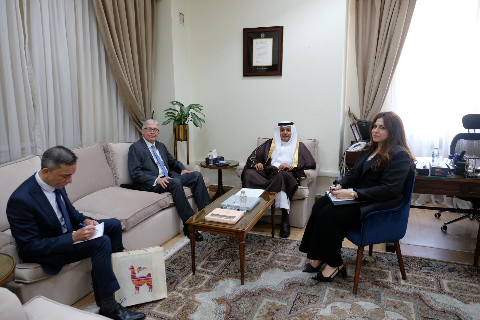 رئيس قطاع الشؤون السياسية الدولية يلتقي سفير جمهورية بيرو بالقاهرة |  | 2025/10/06 استقبل سعادة السفير د.خالد بن محمد منزلاوي الأمين العام المساعد رئيس قطاع الشؤون السياسية الدولية سعادة السفير/ ميغيل لويس مارتين أليمان أورتياغا، سفير جمهورية بيرو بالقاهرة والوفد المرافق له يوم الاثنين الموافق 6/10/2025 بمقر الأمانة العامة.