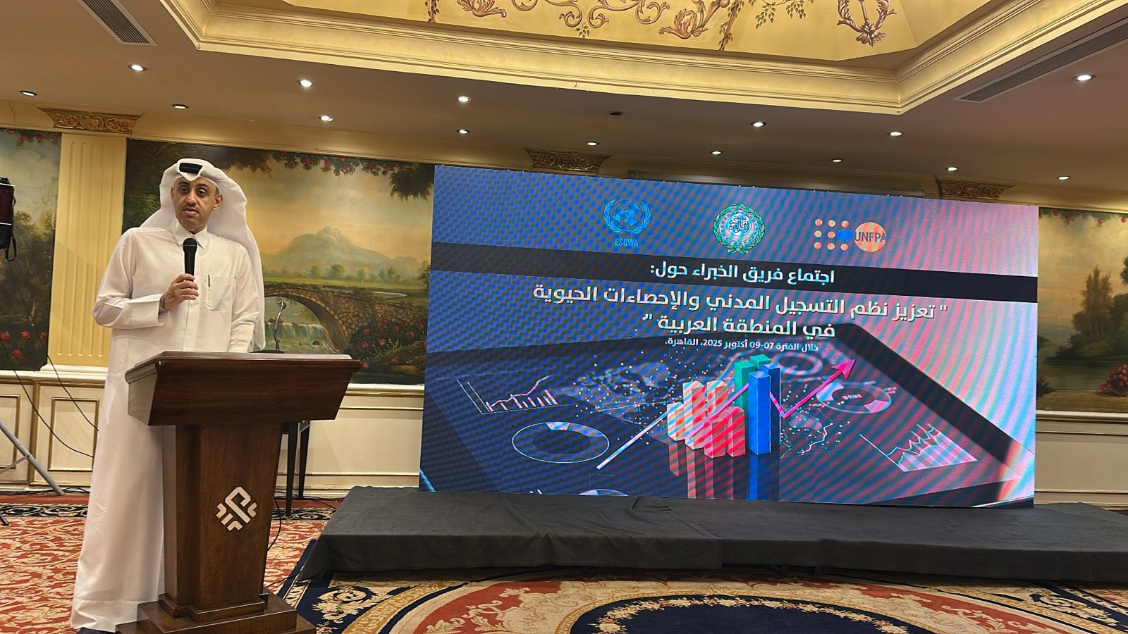 اجتماع فريق الخبراء حول "تعزيز نُظم التسجيل المدني والإحصاءات الحيوية في المنطقة العربية" |  | 2025/10/08 افتتح سعادة السفير د. علي بن إبراهيم المالكي الأمين العام المساعد رئيس قطاع الشؤون الاقتصادية الاجتماع الإقليمي لفريق الخبراء حول "تعزيز نُظم التسجيل المدني والإحصاءات الحيوية في المنطقة العربية" والذي تنظمه إدارة الإحصاء وقواعد المعلومات بالتنسيق مع إدارة الشؤون القانونية ووحدة الدراسات والمسوحات الميدانية الاجتماعية وبالتعاون مع المكتب الإقليمي لصندوق الأمم المتحدة للسكان للدول العربية والاسكوا، والذي يعقد خلال الفترة: 07-09 أكتوبر 2025 بالقاهرة.