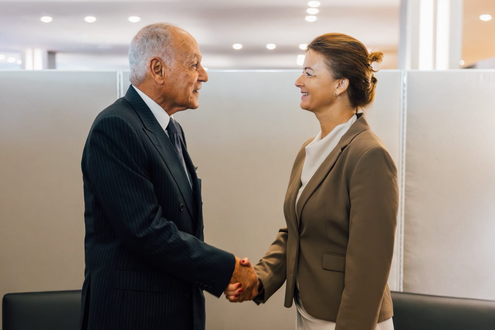 ابو الغيط يلتقي وزيرة خارجية سلوفينيا على هامش أعمال الجمعية العامة للأمم المتحدة |  | 2025/09/26 التقى السيد أحمد أبو الغيط، الأمين العام لجامعة الدول العربية، اليوم الجمعة٢٦/٩/٢٠٢٥، مع السيدة تانيا فاجون نائبة رئيس الوزراء ووزيرة خارجية سلوفينيا على هامش أعمال الشق رفيع المستوى للدورة (٨٠)للجمعية العامة للأمم المتحدة في نيويورك.
