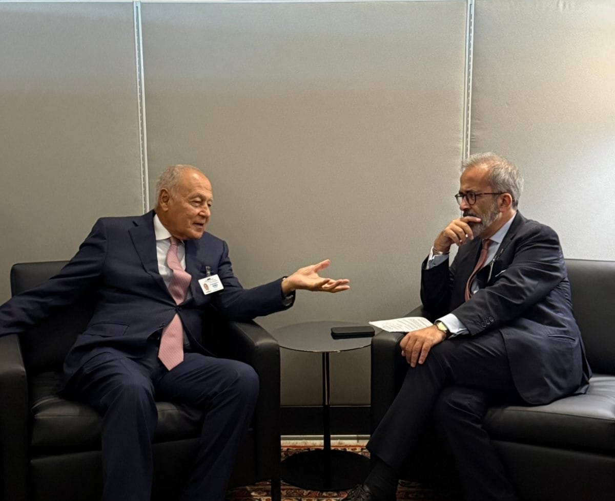 امين عام جامعة الدول العربية يلتقي بوزير خارجية قبرص |  | 2025/09/24 التقى السيد أحمد أبو الغيط، الأمين العام لجامعة الدول العربية، اليوم الاربعاء 24/9/2025، مع السيد كونستانتينوس كومبوس وزير خارجية جمهورية قبرص على هامش أعمال الشق رفيع المستوى للدورة (80)للجمعية العامة للأمم المتحدة في نيويورك.